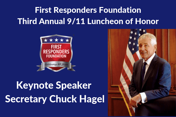 The First Responders Foundation is proud to announce that Secretary Chuck Hagel will be the keynote speaker at the foundations Third Annual 9/11 Luncheon of Honor on September 11, 2019. Sec. Hagel was the 24th Secretary of Defense of the United States and he served two terms in the United States Senate representing the great state of Nebraska.